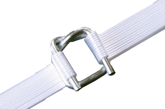 主に帯鉄などの代替として使用されます。バックル一個で締め付けでき、専用締め機1台で引締めからバンド切断まで一括操作。誰にでも簡単にご使用いただけます。