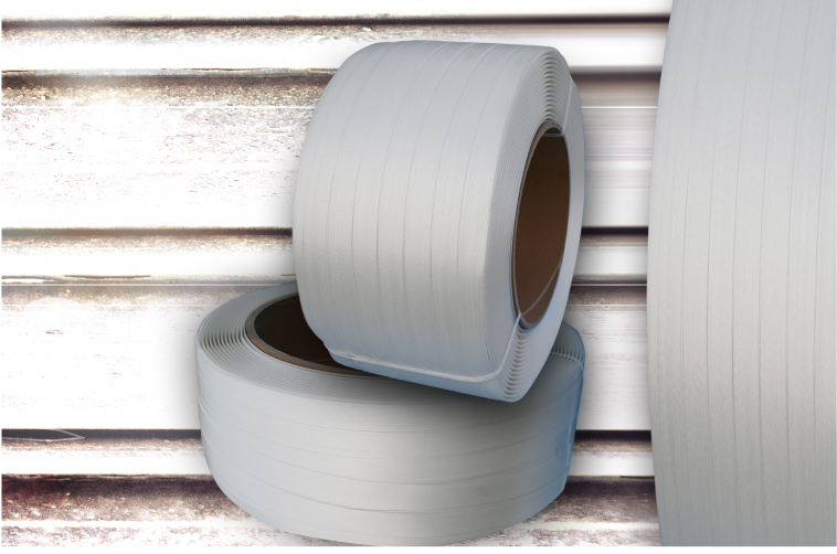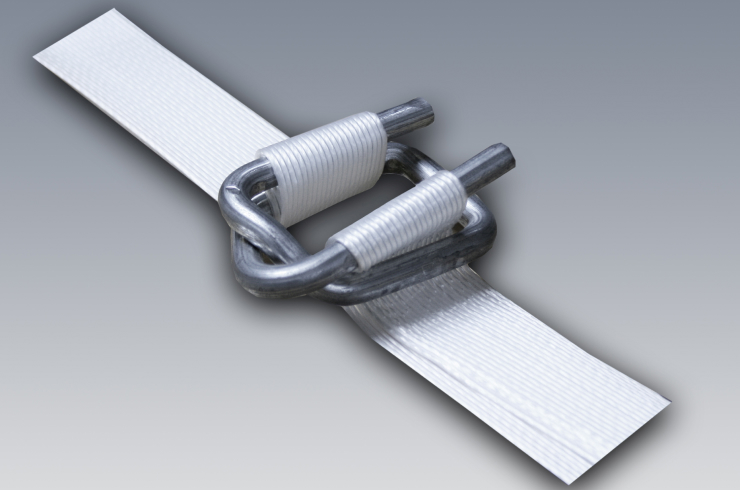 ヨーロッパ生産されたラッシングバンド。コンポジットタイプは一本の繊維に「ねじれ」を入れることによって、強度を高めています。